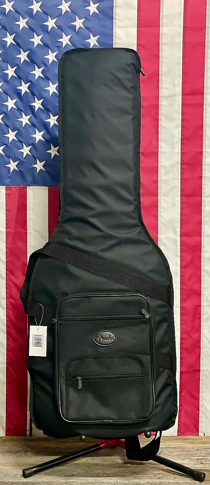 Fender Deluxe Gig Bag, Made From Heavy-Duty Nylon & Padded W/ 4/5" Foam, 2 Adjustable Shoulder Straps, 3 External Zipper Compartments, 2 Handles & Brass Fender Medallion.