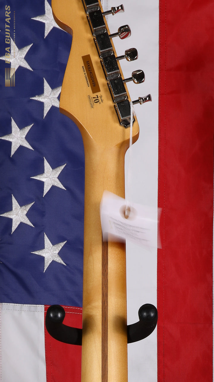 Equipped with Player Series Alnico V Strat® single-coil pickups , this guitar delivers crystalline highs, musical mids, and tight lows. The 5-way blade switch covers everything from glassy neck cleans to biting bridge snarl. A 2-point synchronized tremolo with bent steel saddles and ClassicGear™ tuners ensures precise tuning stability and expressive flexibility.