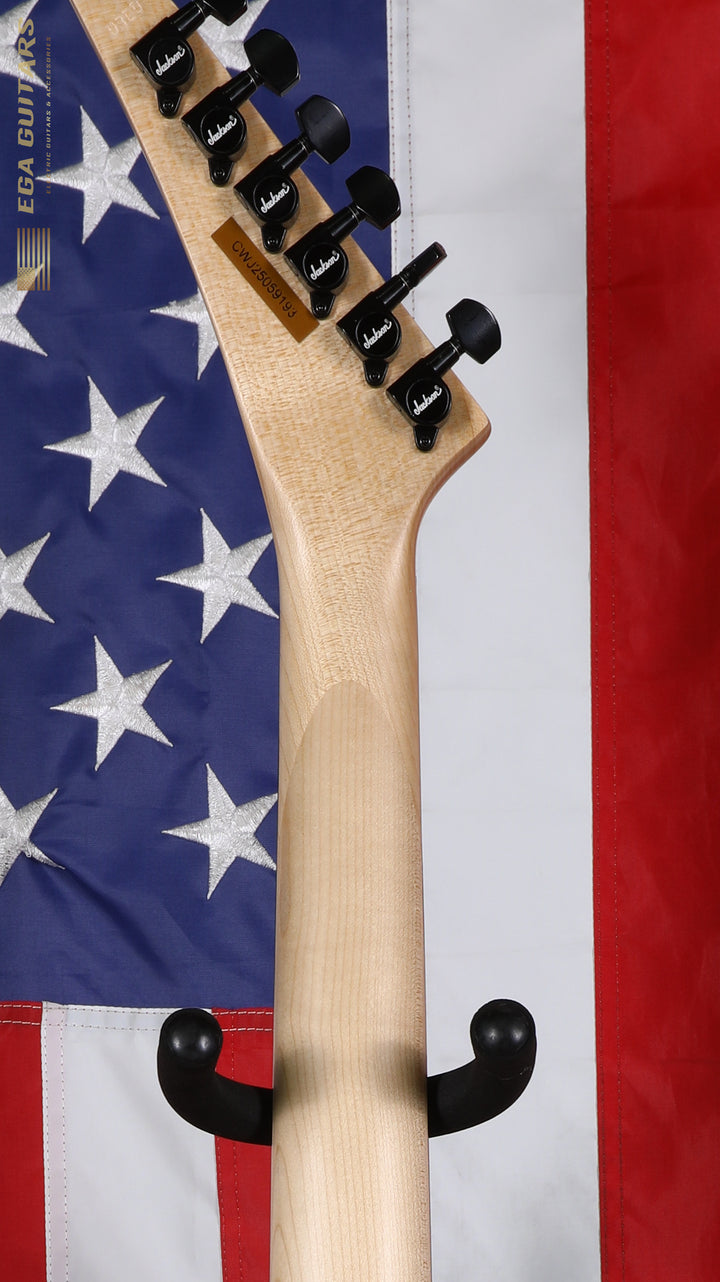 A pair of Jackson high-output humbucking pickups with ceramic magnets provide clear tone with plenty of girth, controlled via a three-way toggle switch, single volume and tone. All-black hardware completes the package, including a synchronized fulcrum tremolo bridge and die-cast tuners.